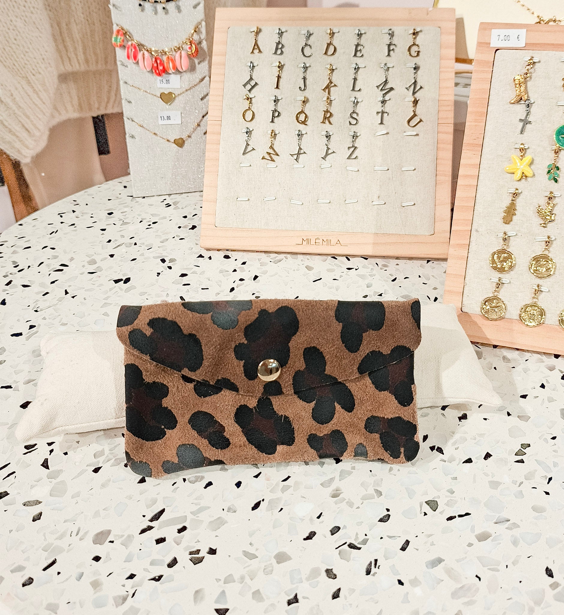 Fabrice Léopard chocolat - Portefeuille cuir