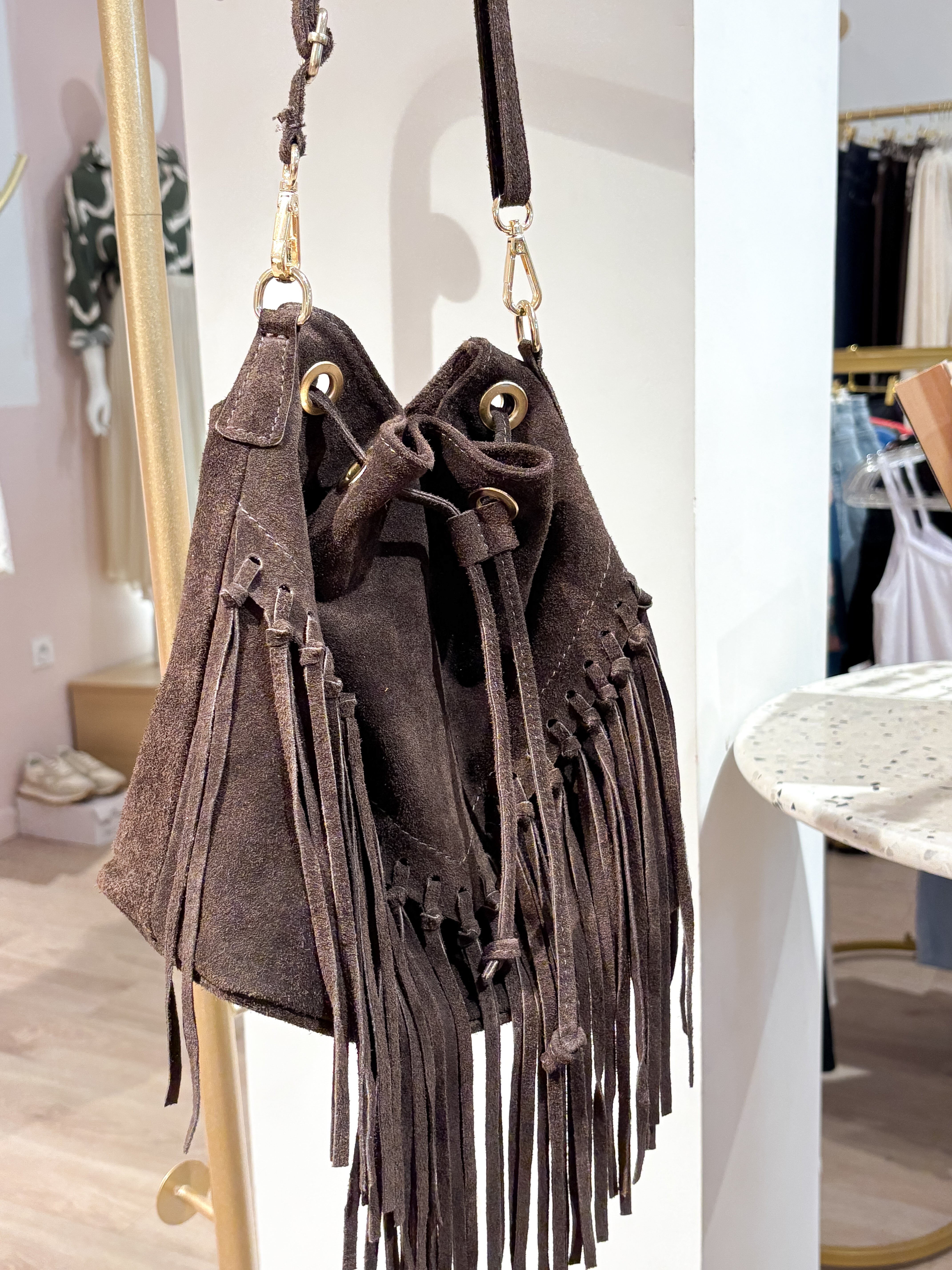 Dakota Noir - Sac à franges en daim